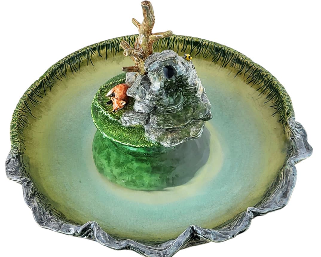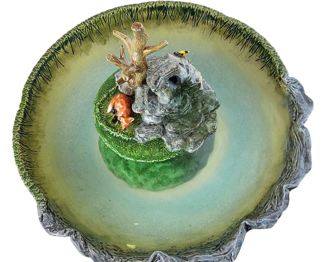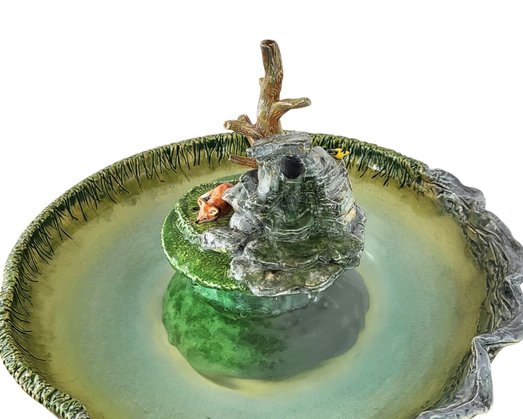 handmade ceramic fox brook fountain โ€“ woodland tree & bird sculpture, high fire art pottery indoor water featureHandmade Ceramic Fox & Brook Fountain